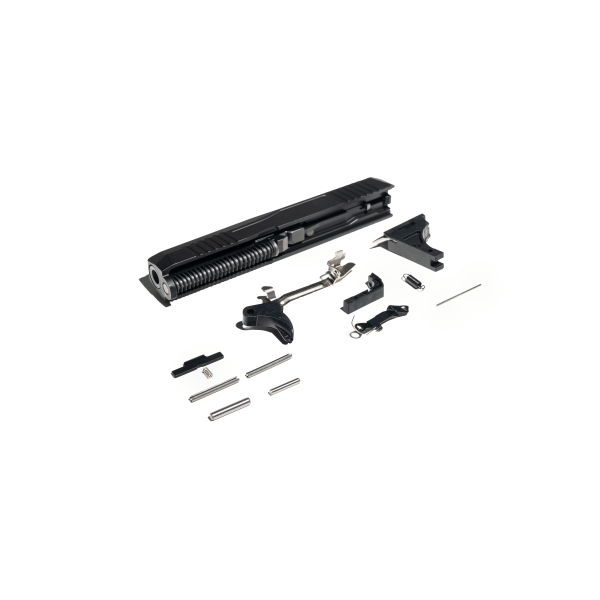 - 2x grip module pins: 3mm diameter, 28mm long slotted spring pin (these replace the dowel pins in the G19 LPK)