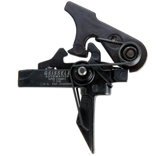 The Super Dynamic Triggers are rugged, non-adjustable combat triggers with a sear design that provides a wide margin of safety against unintentional discharges yet still gives the operator a sharp, repeatable trigger release. The exclusive, flat trigger bow, patterned after the trigger of an M1911 pistol, reduces the perceived pull weight of the triggers and gives outstanding tactile feedback and trigger control