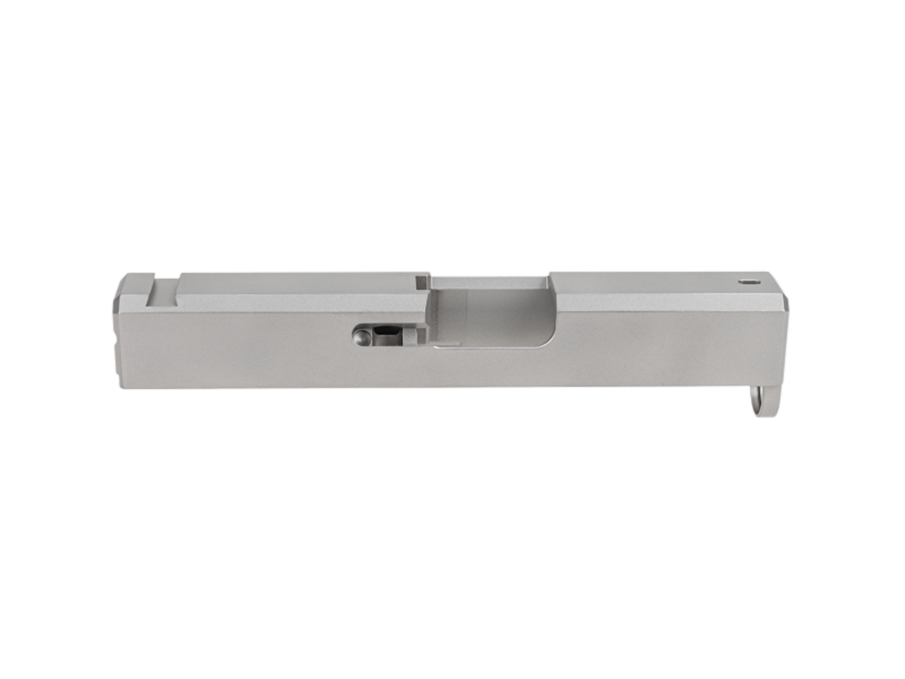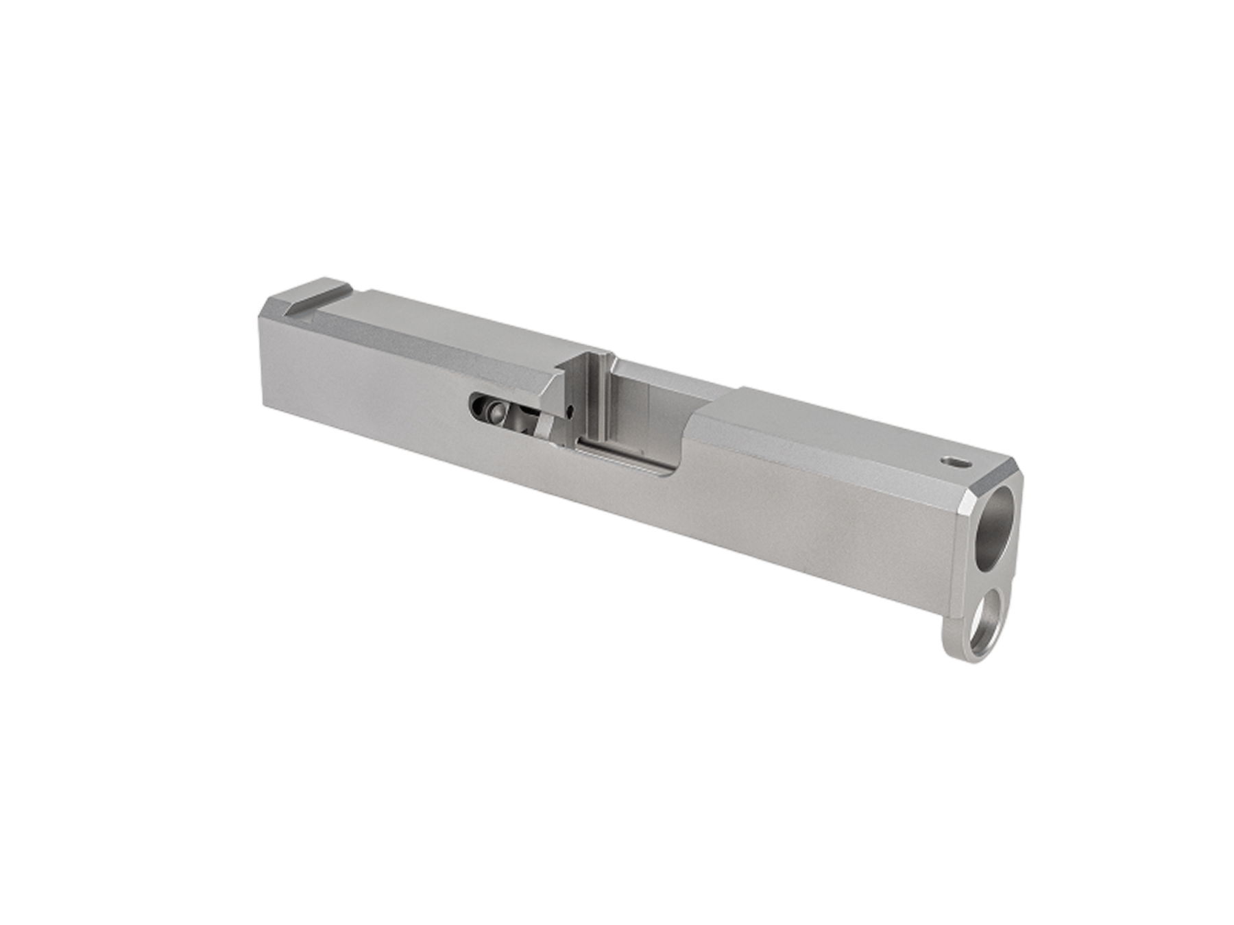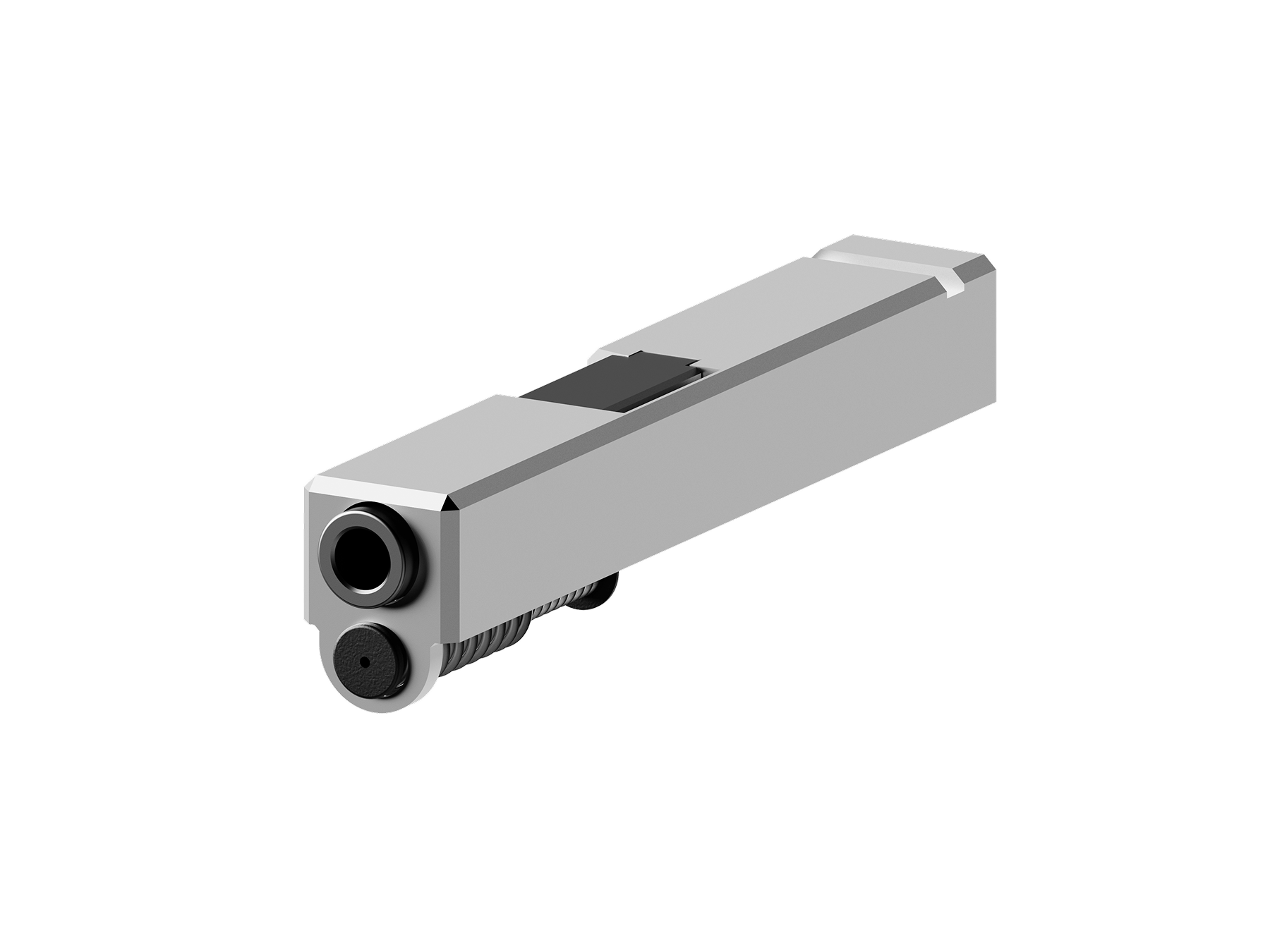 Precision-machined slide crafted from a single billet of 17-4 stainless steel, offering tight tolerances for enhanced accuracy and performance. It features a standard rear dovetail and front sight hole, ready for your preferred sight configuration. Glock 43 Slide is compatible with Glock 43 and Glock 43X