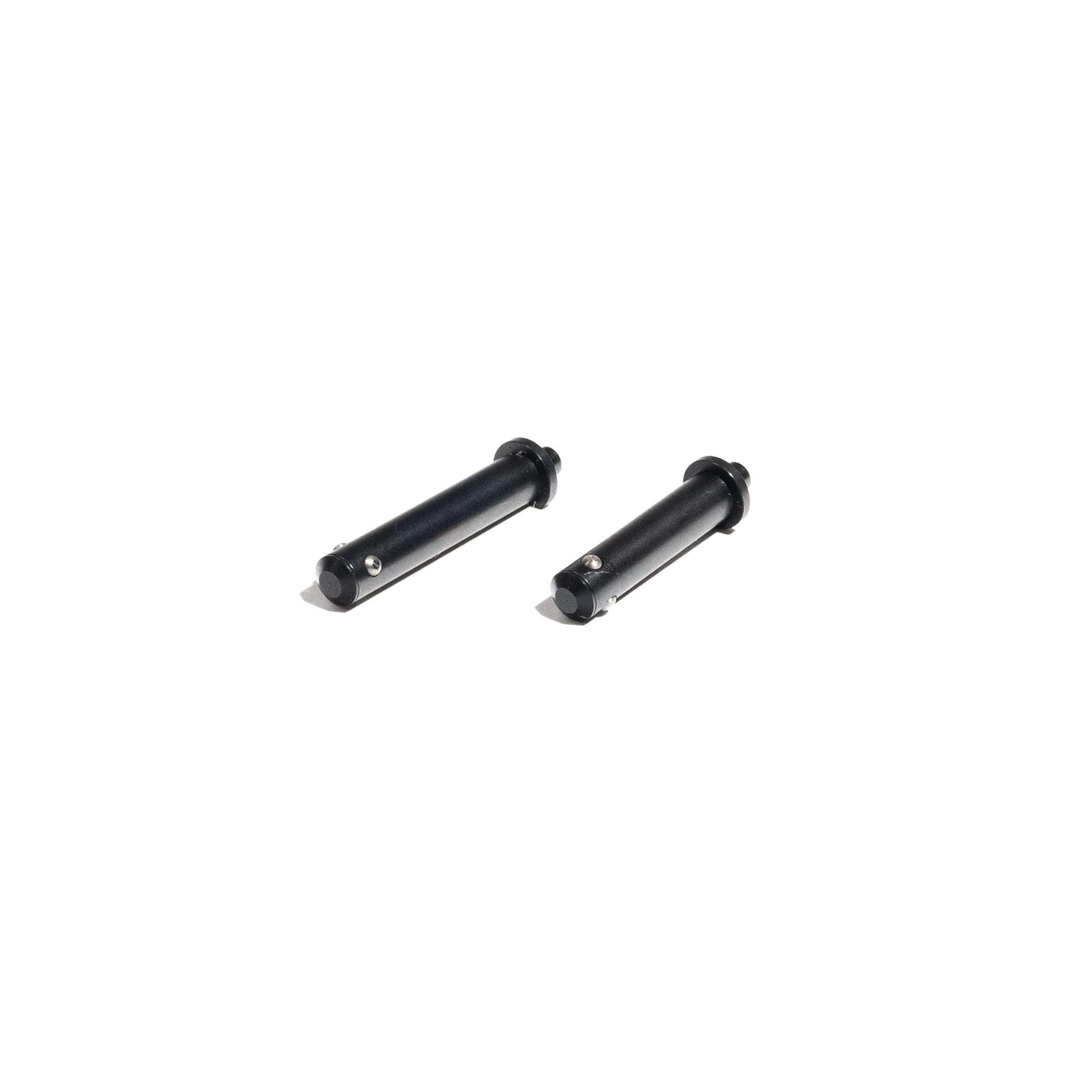 These pins have a spring-loaded push button that, when pushed, retracts the stainless steel detents for easy pin removal. The steel housing has a black oxide finish. The button also has a drilled cross hole which allows for the installation of a seal wire to prevent tampering with the guns internals. The pins are fitted with an end cap to simplify pin removal and installation. It also prevents any debris from entering the internal parts of the pins.