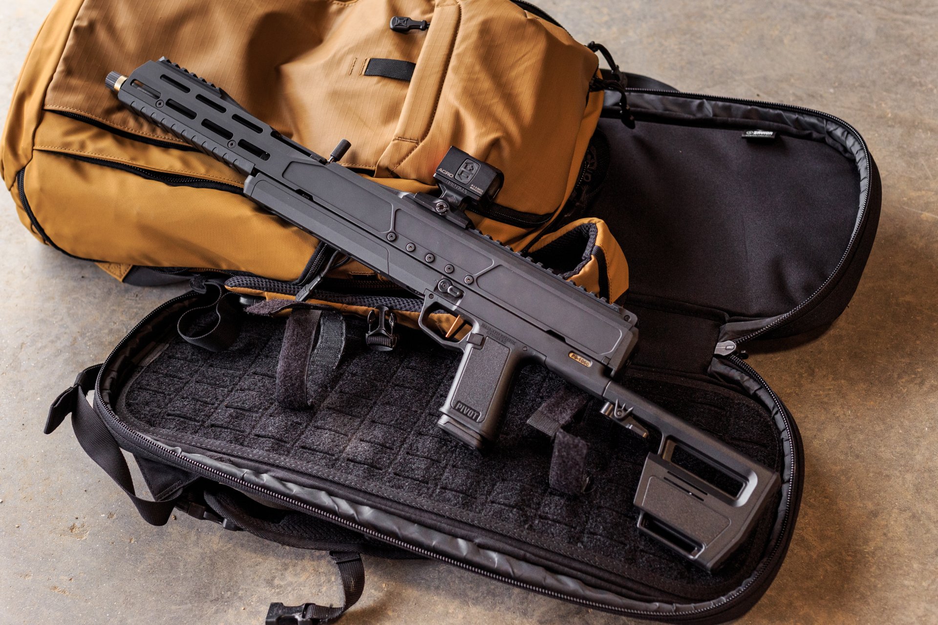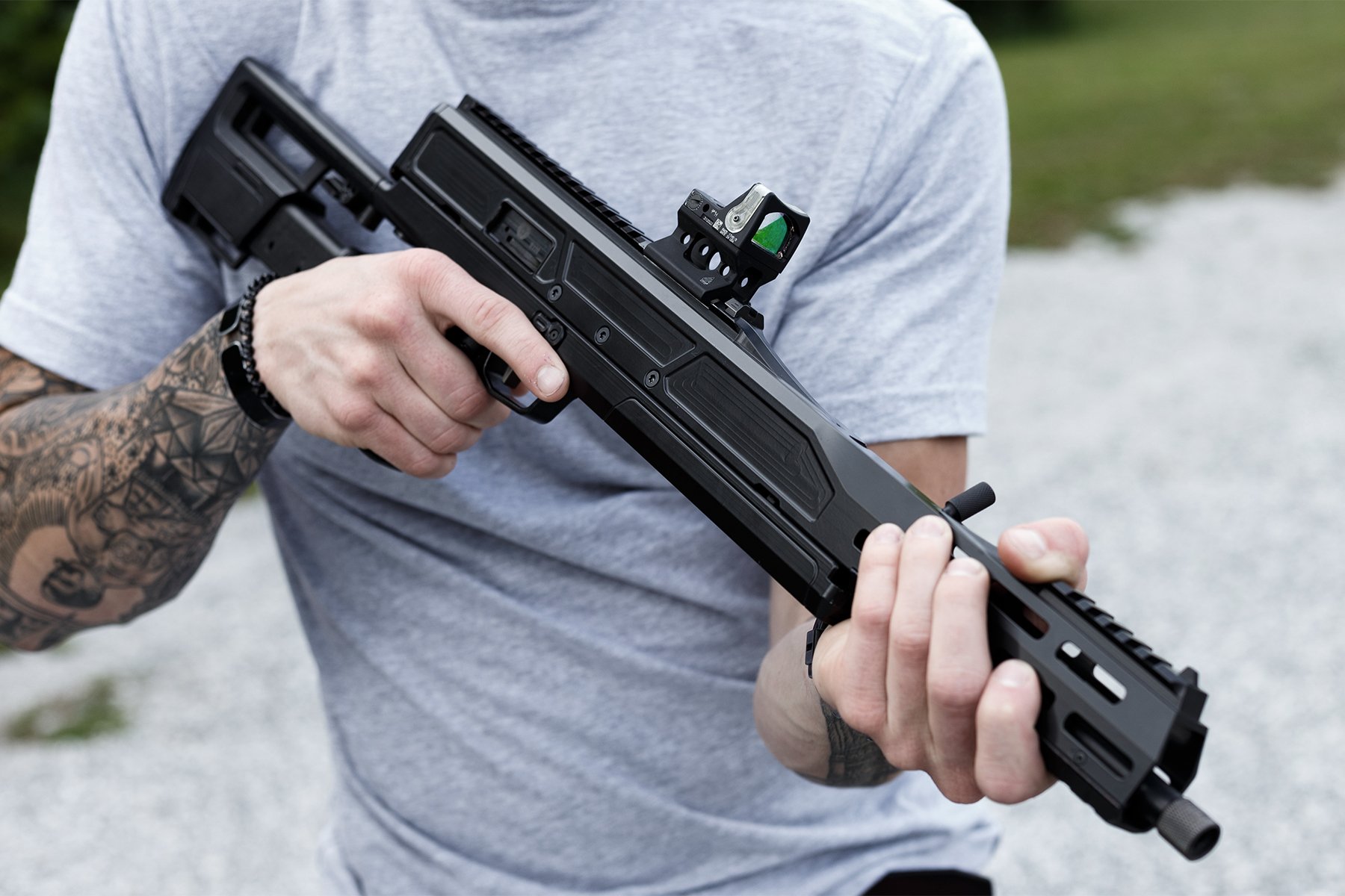 A semi-automatic 9mm Ultracompact Folding Rifle. Patented technology allows the Pivot™ Rifle to collapse in a unique way, maximizing portability when folded and function when unfolded – Rifle Reimagined™.