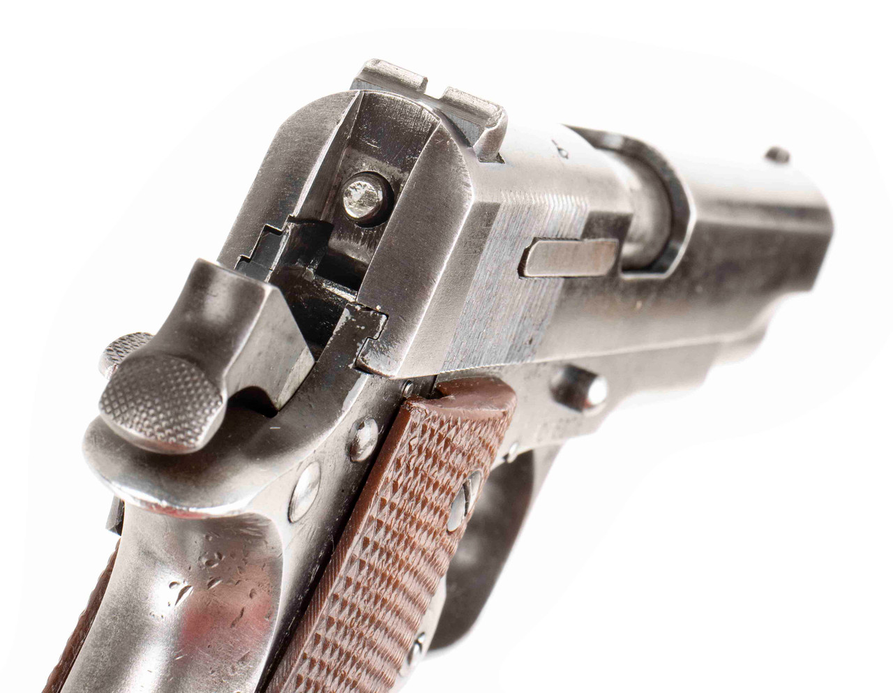 The Star Model BS updates the original B with an improved slide‑mounted safety and refinements to the firing‑pin system. Retaining the 5″ barrel, single‑action trigger and 8‑round magazine, this blued‑steel handgun tips the scales at about 34 oz (2.14 lb) and delivers the same reliable, locked‑breech performance trusted by Spanish security forces. Two front sling‑swivel cuts and a 1:10 twist rifled barrel make the BS a desirable collector’s variant for those who want the full‑size Star feel with added safety features.