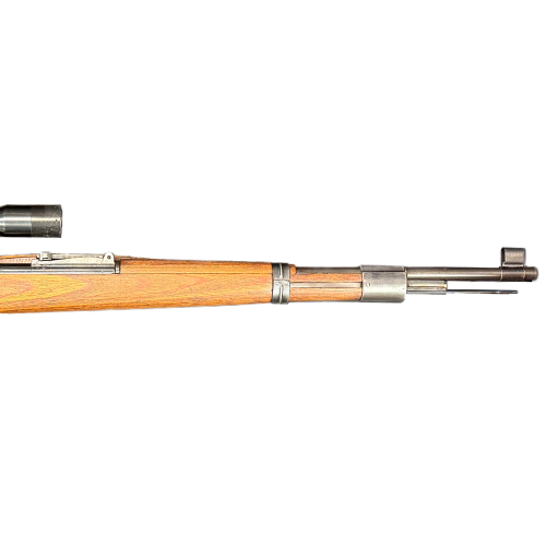 This is a rare, all-matching German K98 sniper rifle manufactured by JP Sauer & Sohn and dated 1944. The rifle has retained a remarkable level of originality: the receiver, bolt, barrel, and most metal fittings carry serials in the same block and match each other, confirming the rifle’s integrity as a single wartime assembly.