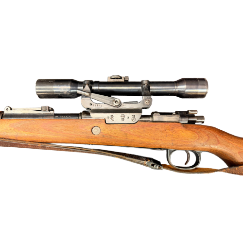 This Sauer & Sohn K98 represents a well-documented wartime sniper conversion: an original service rifle converted and used with a high-quality Austrian-made Kahles optic. The completeness of the set — matching numbers across metal and stock, original low-turret mounts, and period Kahles 4×60 — makes this a desirable piece for collectors seeking authenticity and provenance rather than a later rebuild or reproduction.