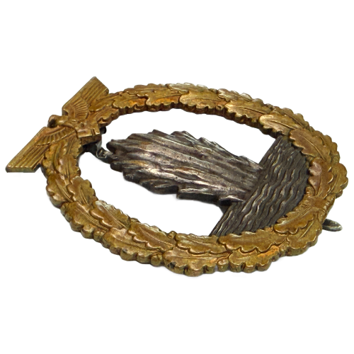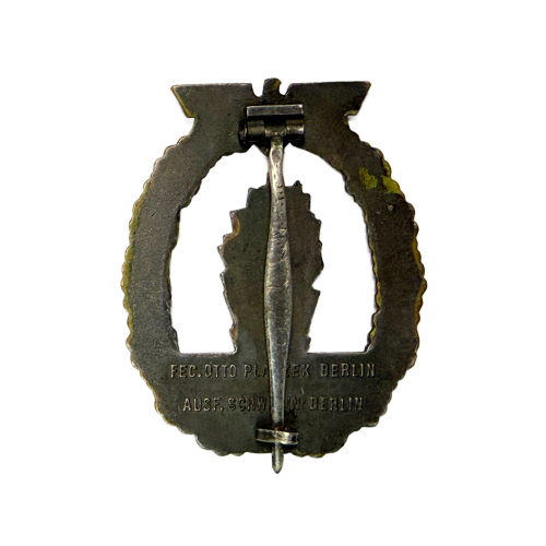 - Design: Oval oak-leaf wreath surmounted by the Kriegsmarine eagle clutching a swastika, with a detailed central naval mine motif