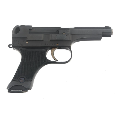 Chambered in 8x22mm Nambu, the Type 94 was a compact semi-automatic pistol with a 6-round detachable box magazine. It had a short-recoil, locked-breech design and was known for its lightweight, streamlined form. The frame and slide were made from blued steel, with grooved wooden grips attached by screws.